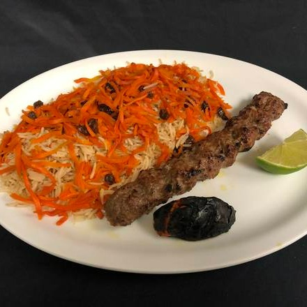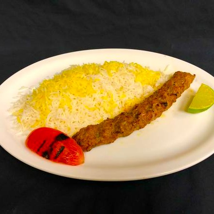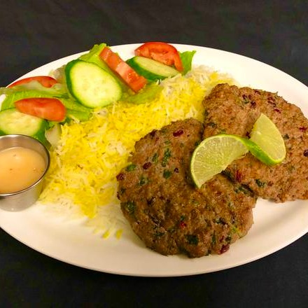 Minced AAA beef Prepared with special herbs and spices and mixed with barberries grilled with low temperature to flavourful and delicious serving with saffron rice and salad or you can order with Naan.