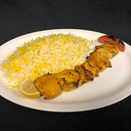 This is incredible a skewer of marinated lamb served with saffron rice or salad a must-try.