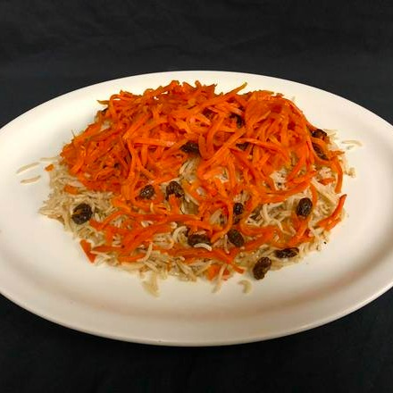 Lamb cooked to perfection covered in Kabuli, rice, topped with raisins and carrots.