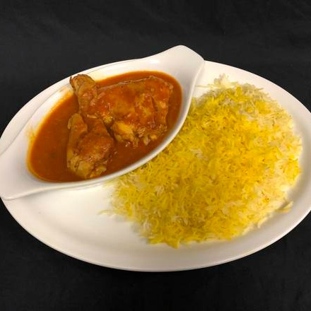 Prepared with special spices and tomatoes slow cooked serving with saffron rice or Naan.
