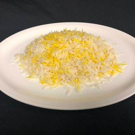 Steam cooked seleh basmati rice topped pinch of saffron