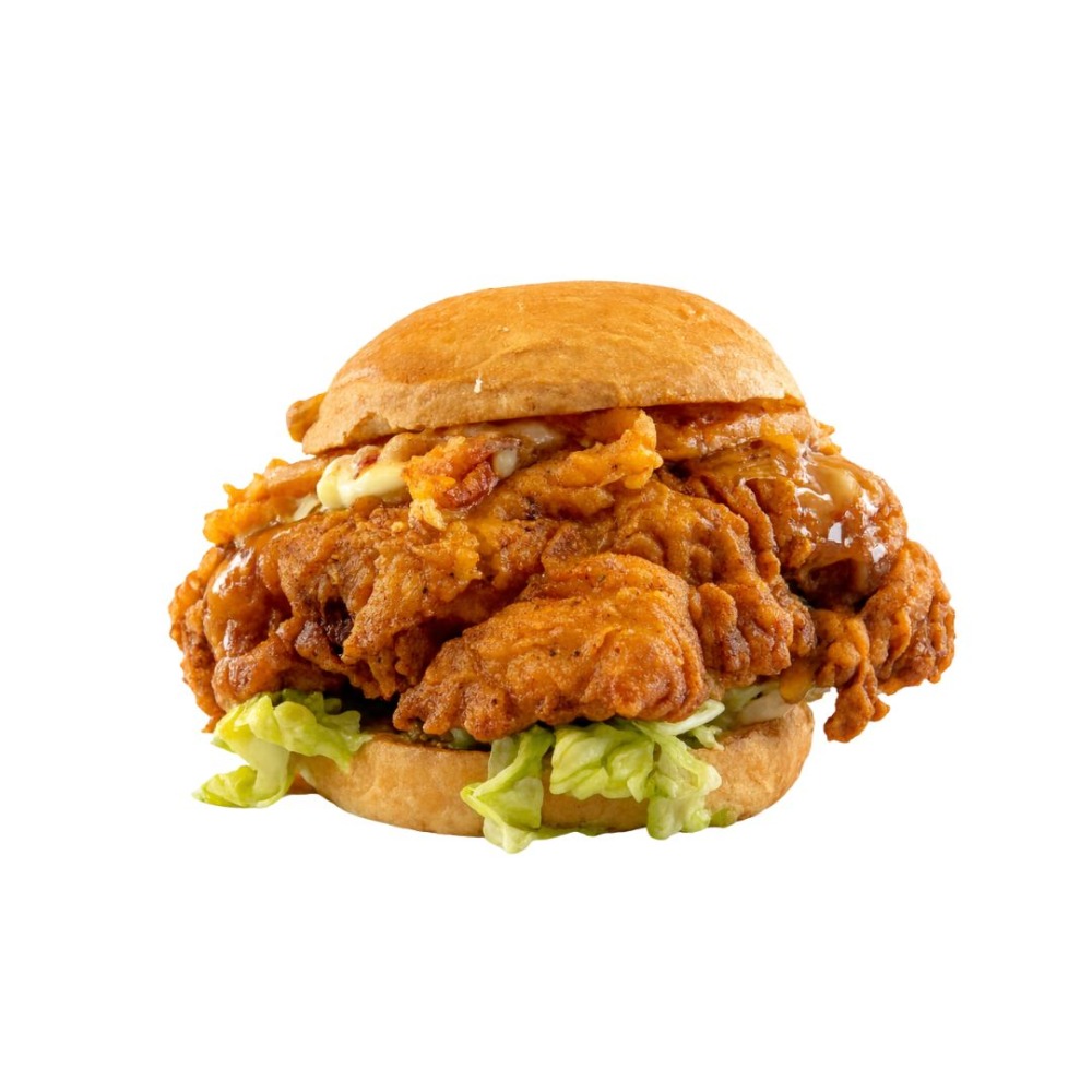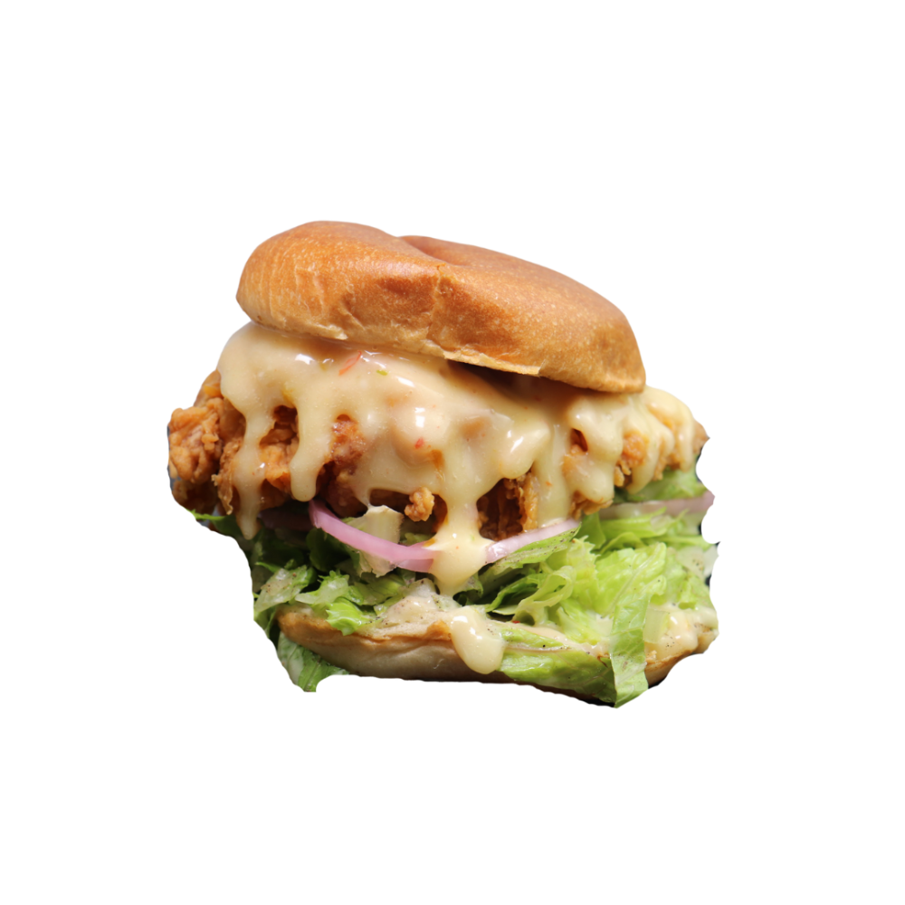 Mayo, Crispy Red Onions, Orange Chicken Sauce.