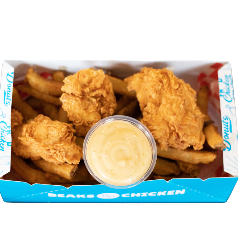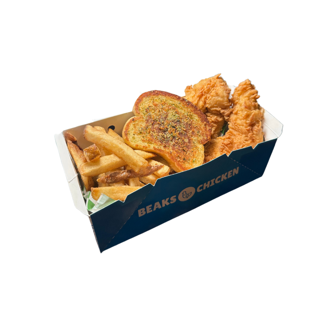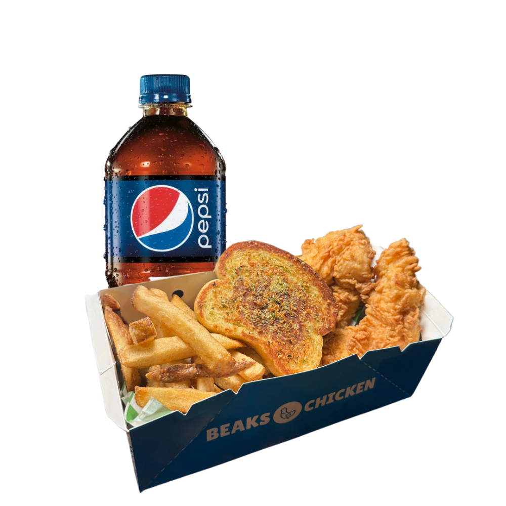 3 massive strips, garlic toast, choice of side + dip, 591 ml drink.