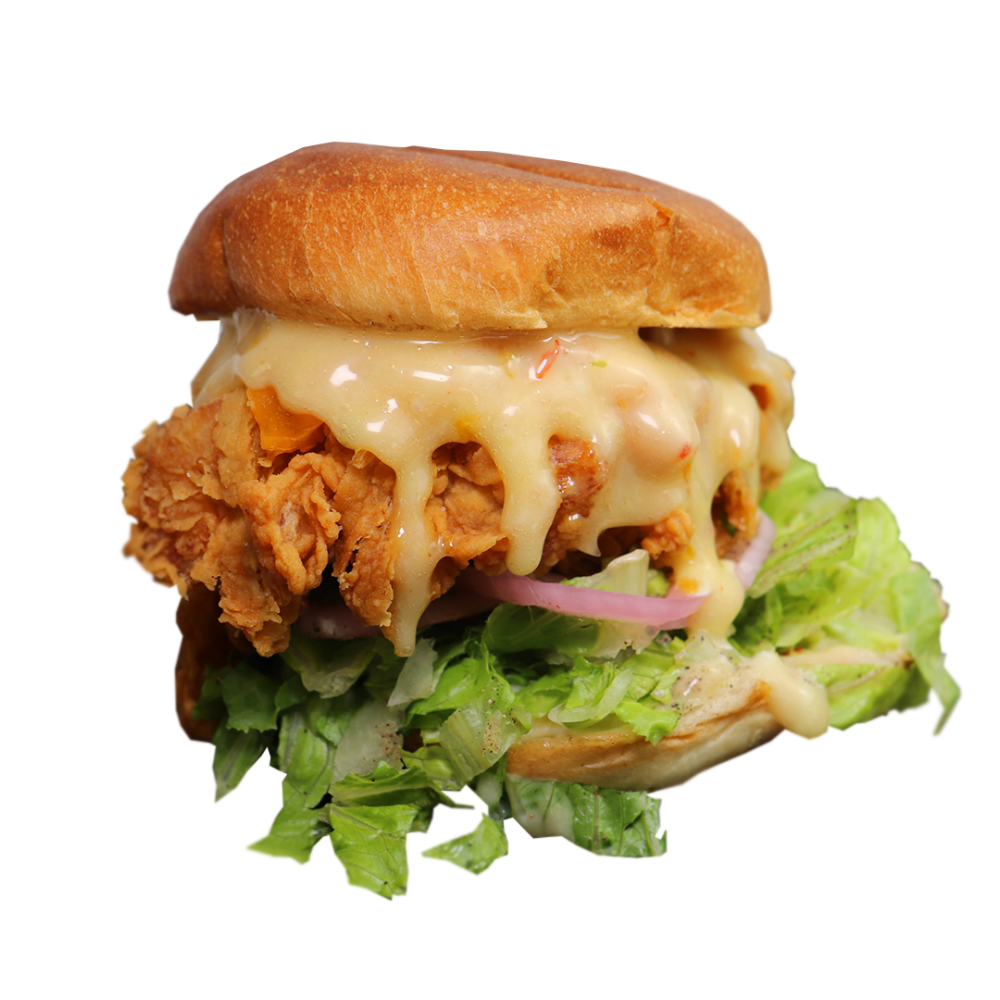 Honey habanero-mayo, cheddar, pickled red onions, lettuce.