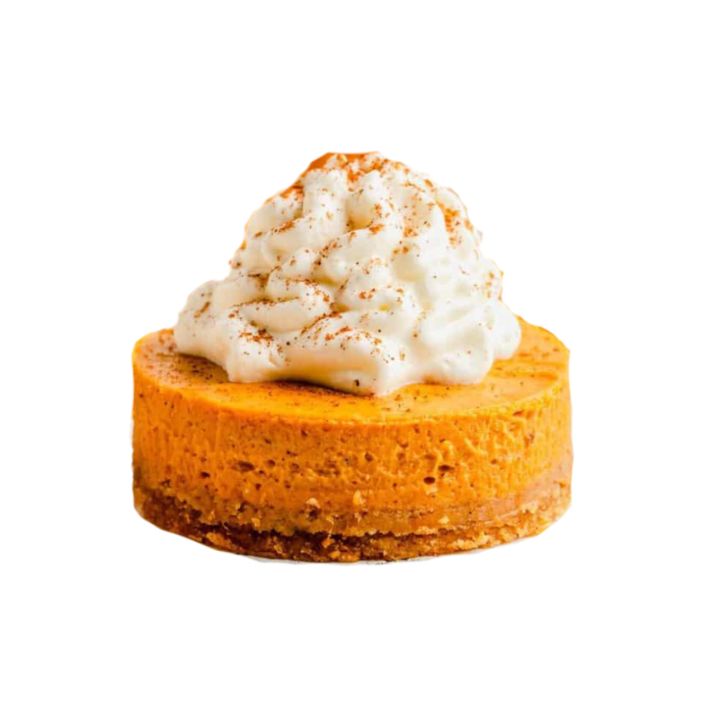 Pumpkin Cheesecake, Whip cream, Graham cracker crust.