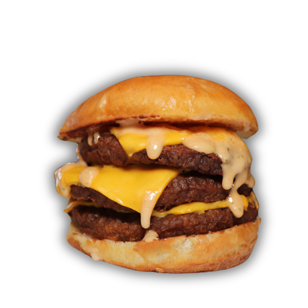 Triple Beef Burger, Beaks Sauce, Red onion, Sliced Pickles and cheddar cheese.