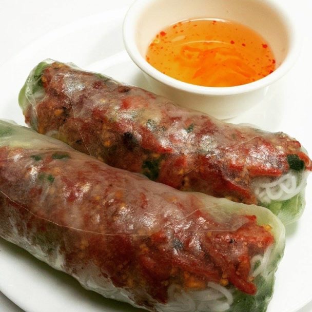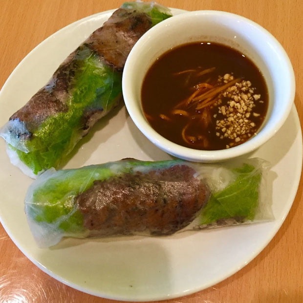 Rice paper wraps beef ,cucumber, cilantro, pickled carrot, lettuce , and noodle. Comes with hoisin sauce on the side. 2 rolls per order.