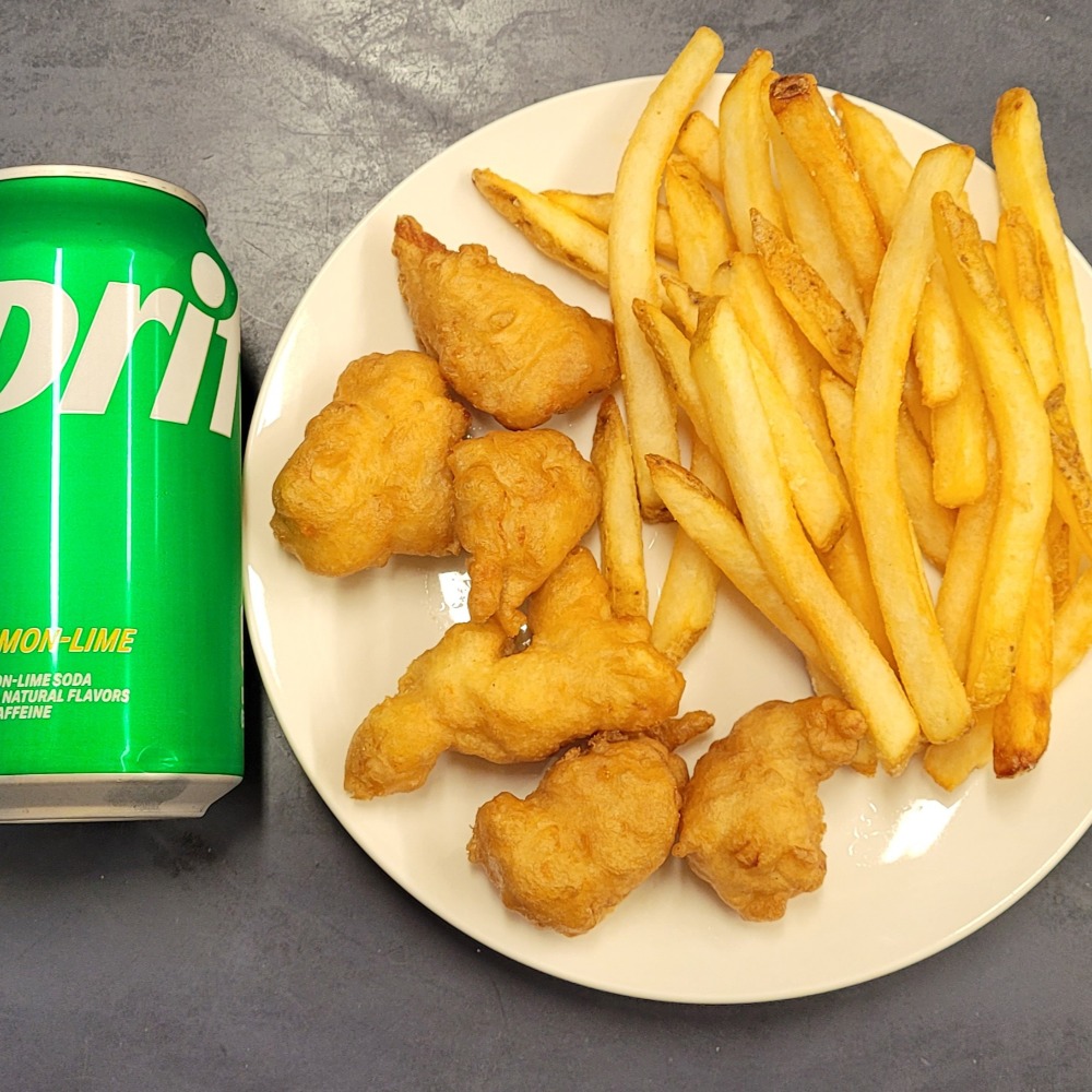 WITH [6] PIECE CHICKEN NUGGETS W/ FRENCH FRIES & A SODA CAN