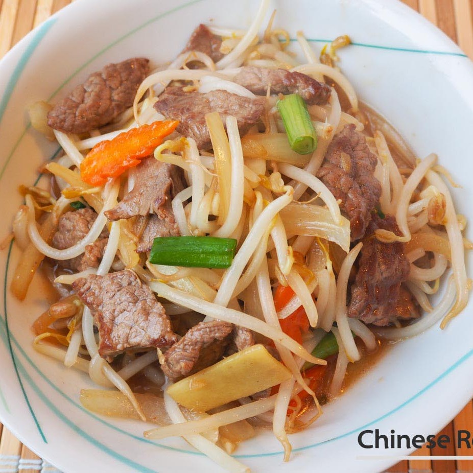 a dish made chiefly from bean sprouts, onions, mushrooms and add meat if requested