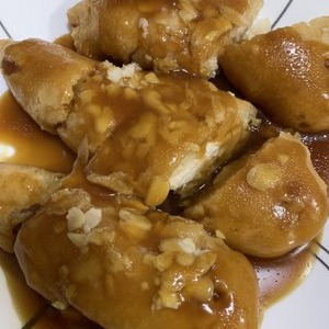 Like lemon chicken BUT no lemon sauce. it comes with special homemade sauce and almond.