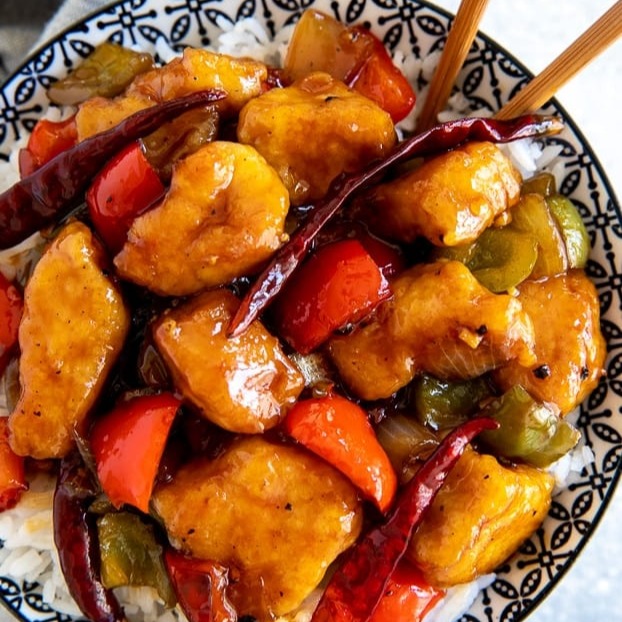 Half crispy chicken with peking homemade sauce. Photo shown is for illustration purpose only.