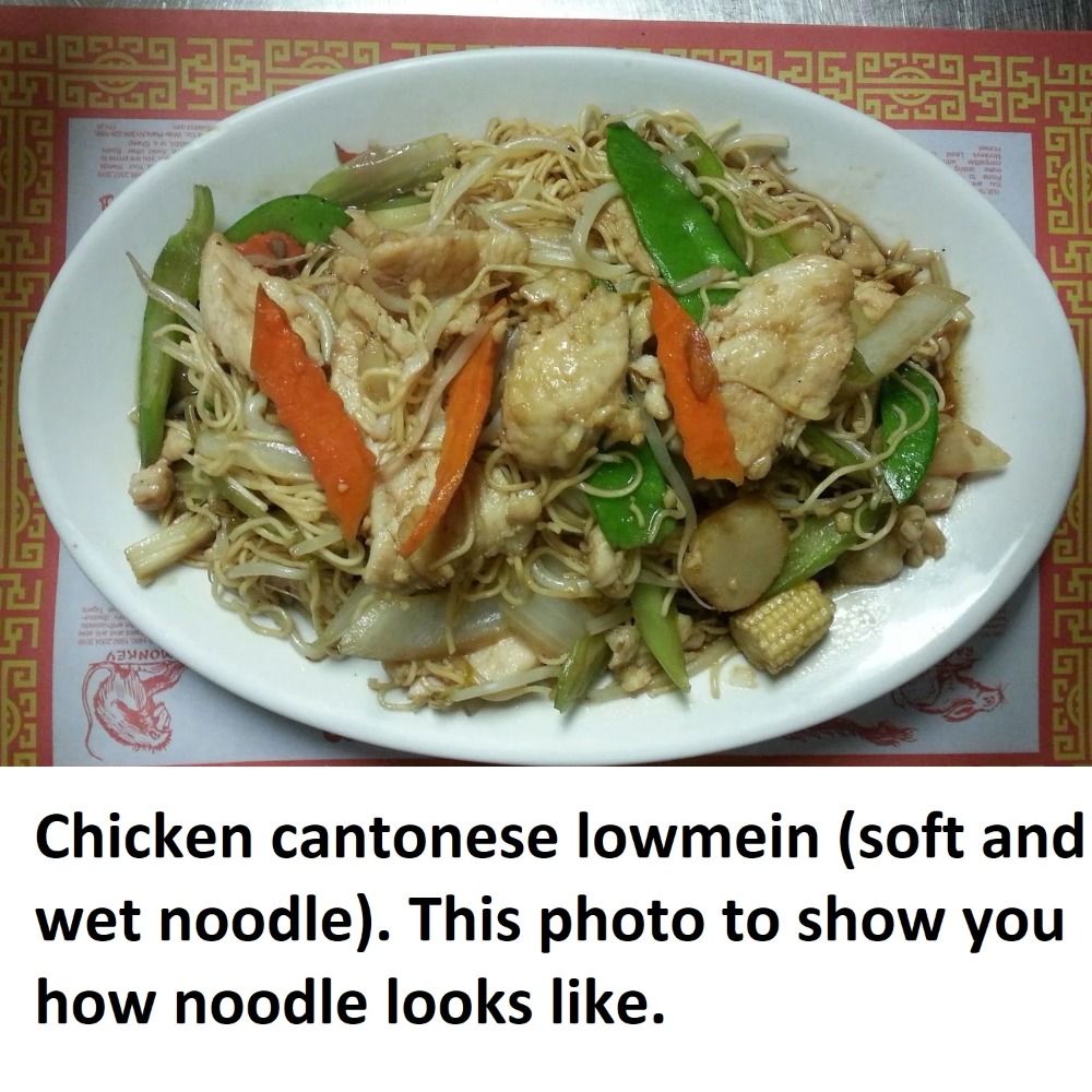 Chow mein is CRISPY noodle. Low mein is SOFT noodle. photo shown is for illustration purpose only