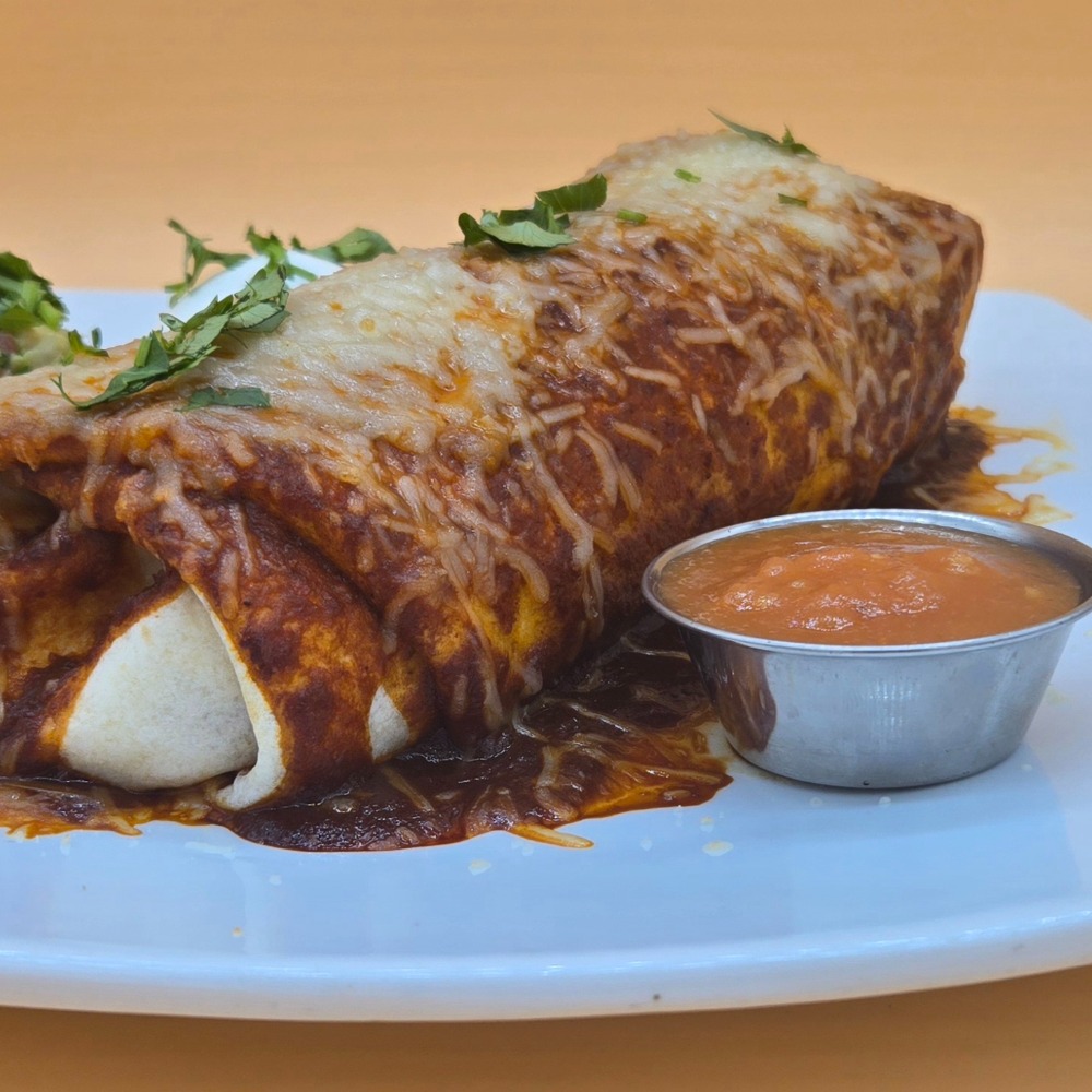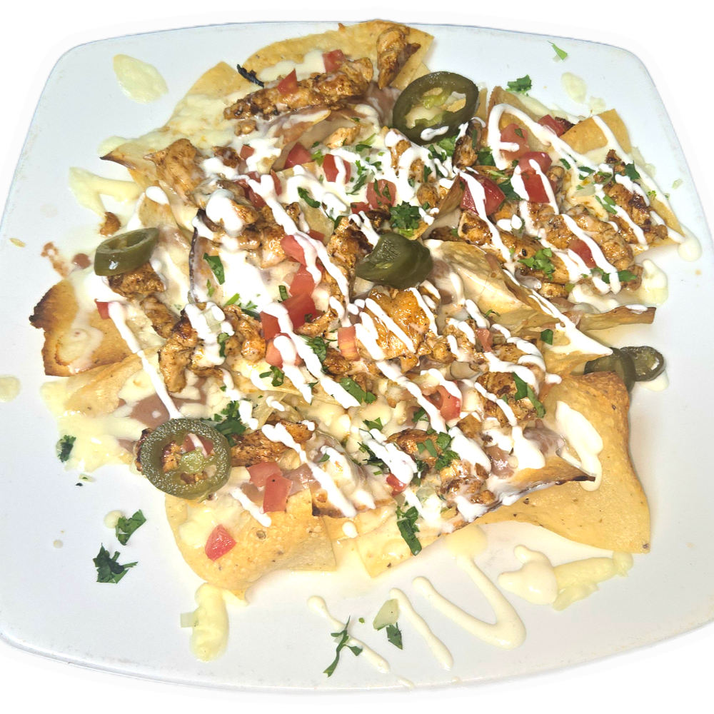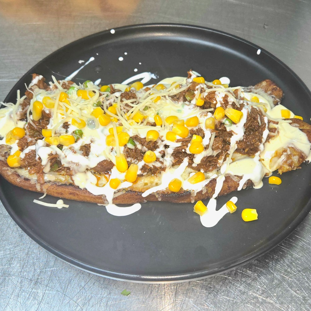 Shredded beef or chicken special house sauce, cheese, corn and sour cream on top.