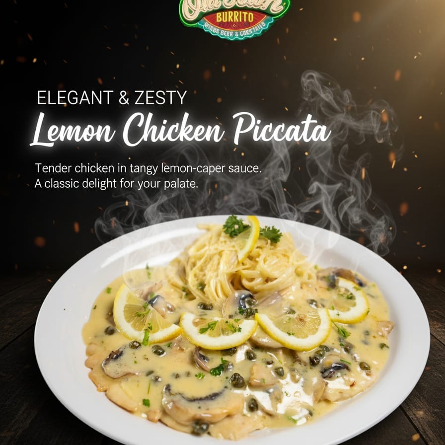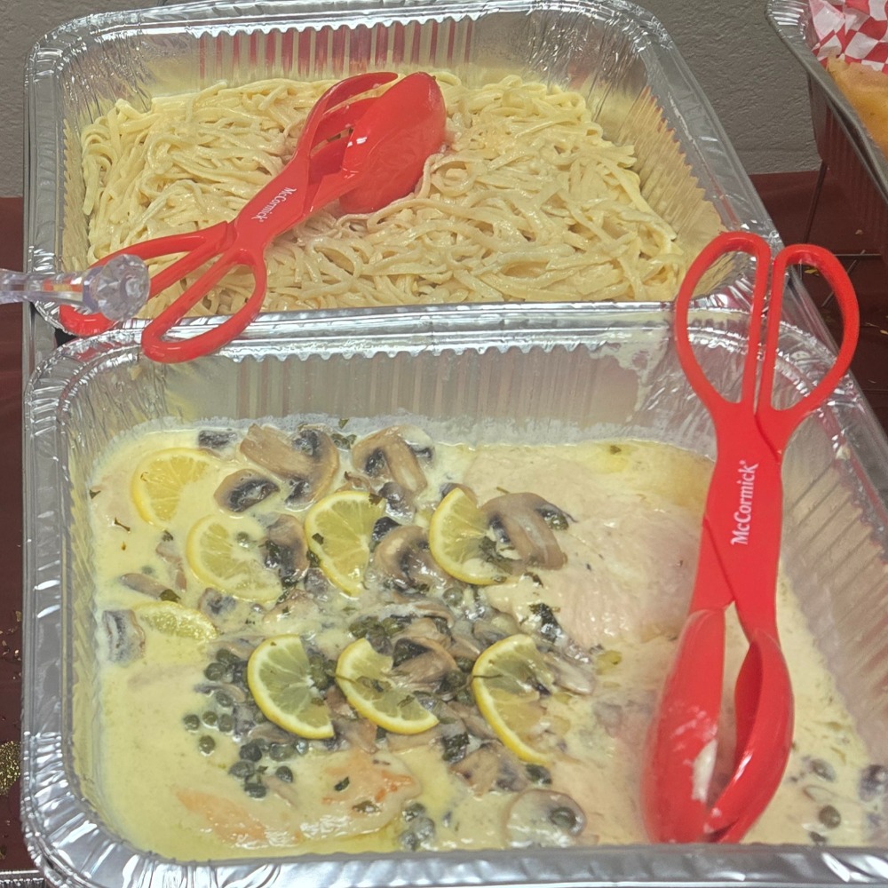 Linguine, lemon butter sauce, garlic, mushrooms, capers and half moon style lemons.
