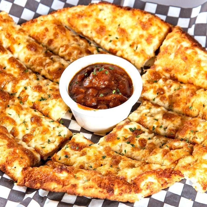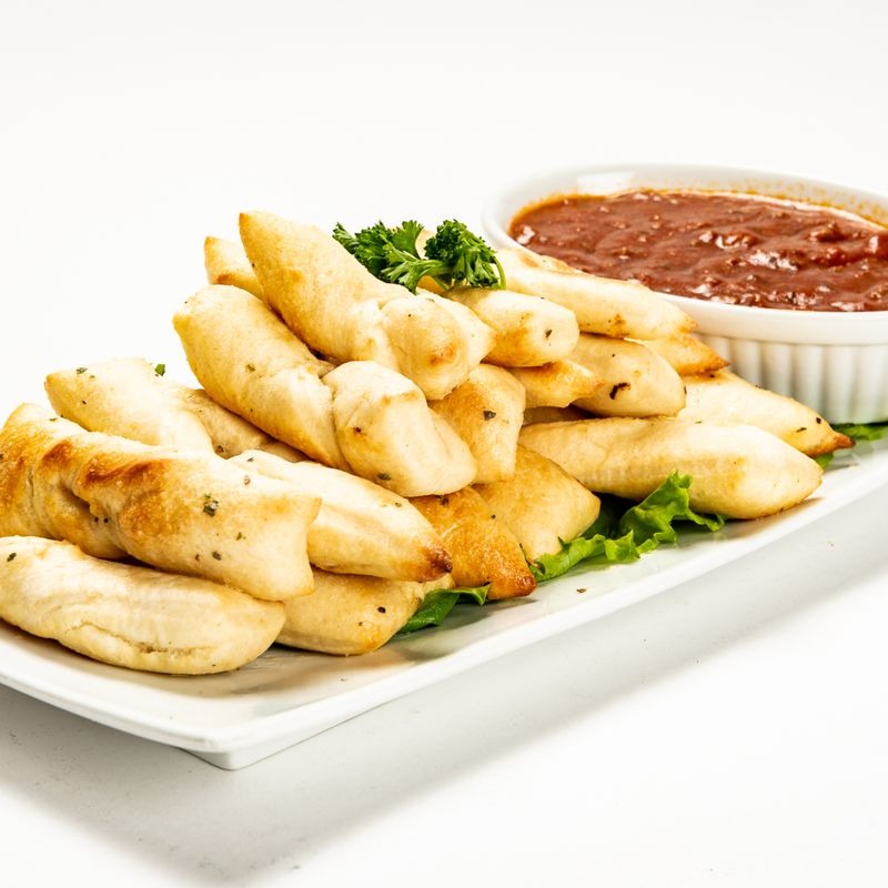 Vegetarian. Pizza dough cut into strips, brushed with garlic topping, sprinkled with mozzarella cheese, and then freshly baked. Served with a side of Santa Lucia Pizza's famous meat sauce or marinara sauce.