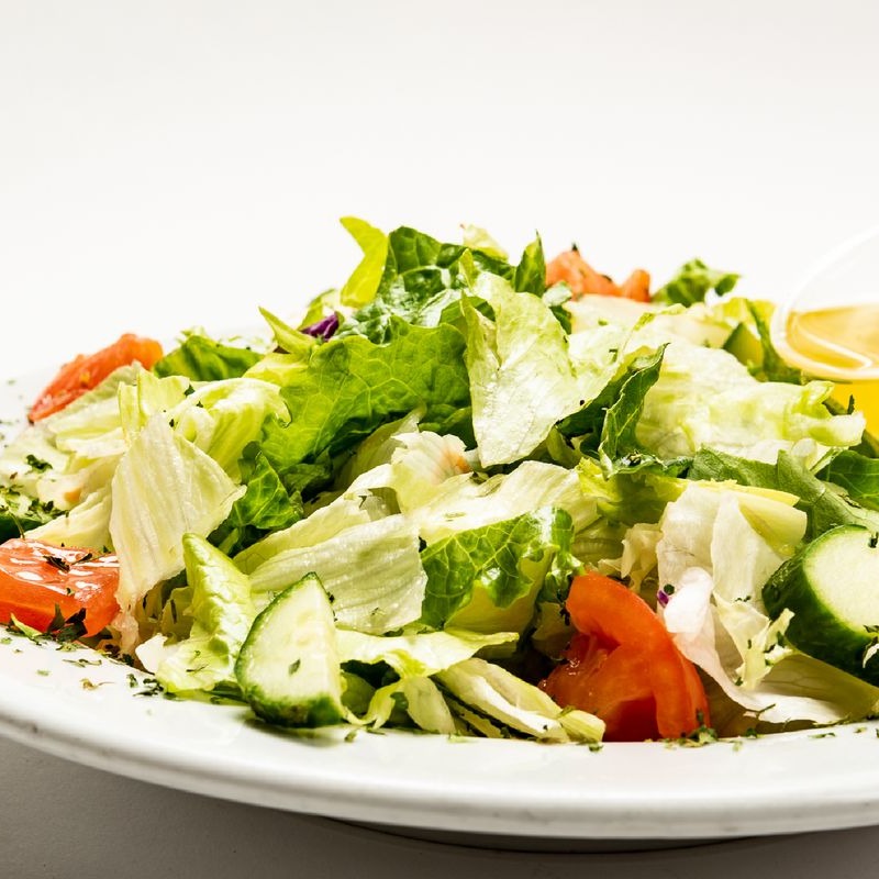 Vegetarian. Greens, tomatoes, and cucumbers topped with mozzarella and cheddar cheeses.