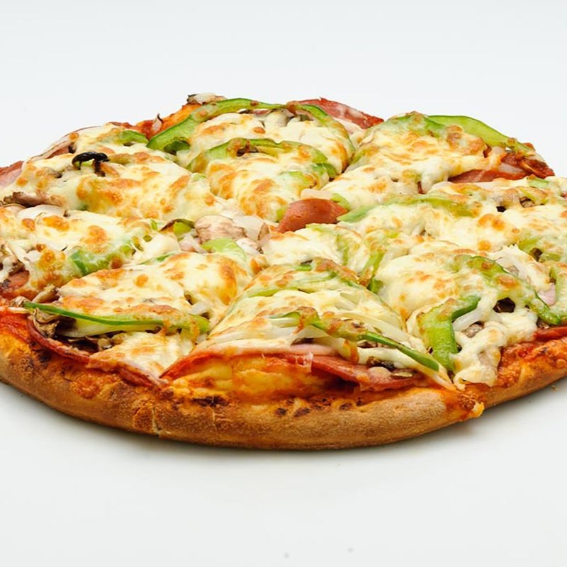 Santa Lucia's best seller! Pepperoni, bacon, mushrooms, onions, and green peppers.