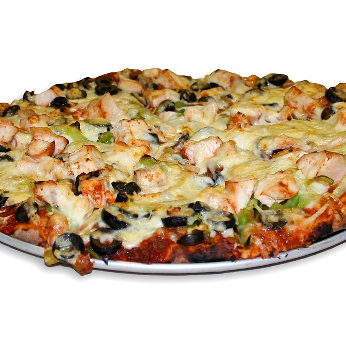 A little spicy! Seasoned chicken breast, onions, green peppers, black olives, and spicy tomato sauce.