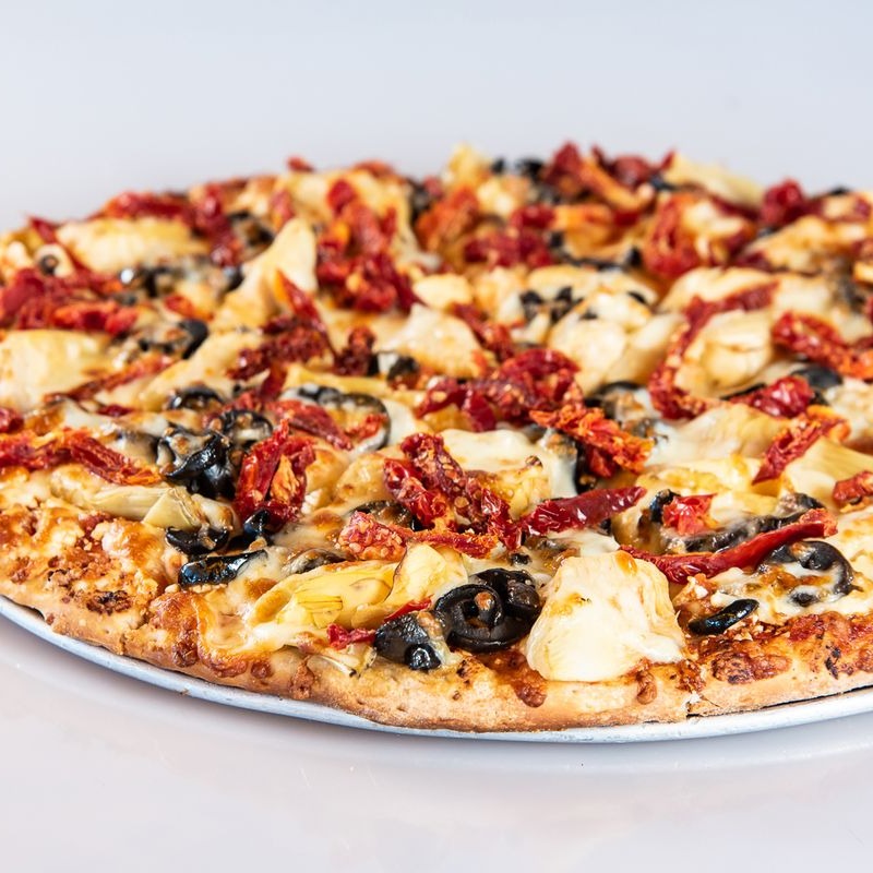 A great vegetarian choice! Sundried tomatoes, feta cheese, black olives, and artichoke hearts.