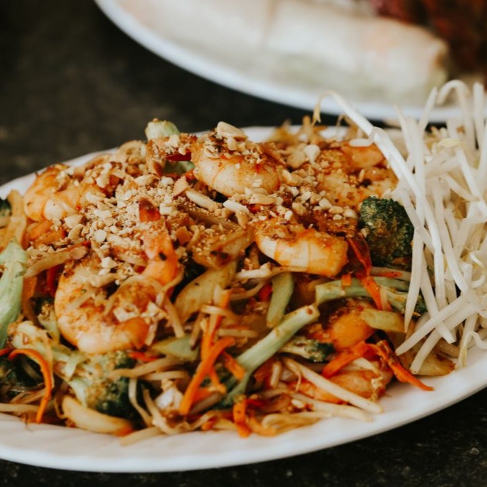 Comes with Vegetables, Chicken, Egg Noodle Stir-Fried to perfection in Thai Special Sauce.