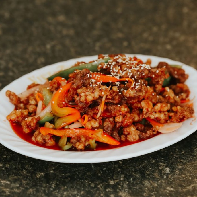 Sauteed with 3 different kinds of Peppers, Onions & Mushrooms in Spicy Oyster Sauce.
